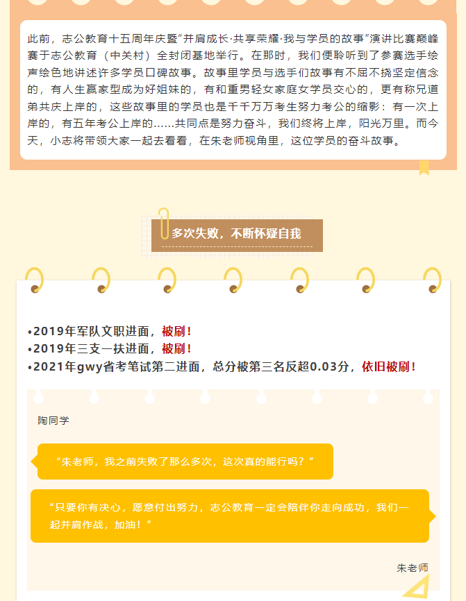 他成功上岸后,滿懷感激地給我們志公教育全體老師送來了錦旗。作為他的報(bào)班老師,我很欣慰看到他的努力得到了回報(bào)。他的勵(lì)志奮斗上岸故事也讓我深受鼓舞,讓我深刻認(rèn)識(shí)到,只要有堅(jiān)定的目標(biāo),持之以恒的努力,善于借鑒他人成功的經(jīng)驗(yàn),我們也能在工作中取得更多的成就與進(jìn)步!幫助更多學(xué)員實(shí)現(xiàn)他們的夢(mèng)想!向?qū)W員學(xué)習(xí),也向所有致力于努力備考奮斗的學(xué)員們致敬!