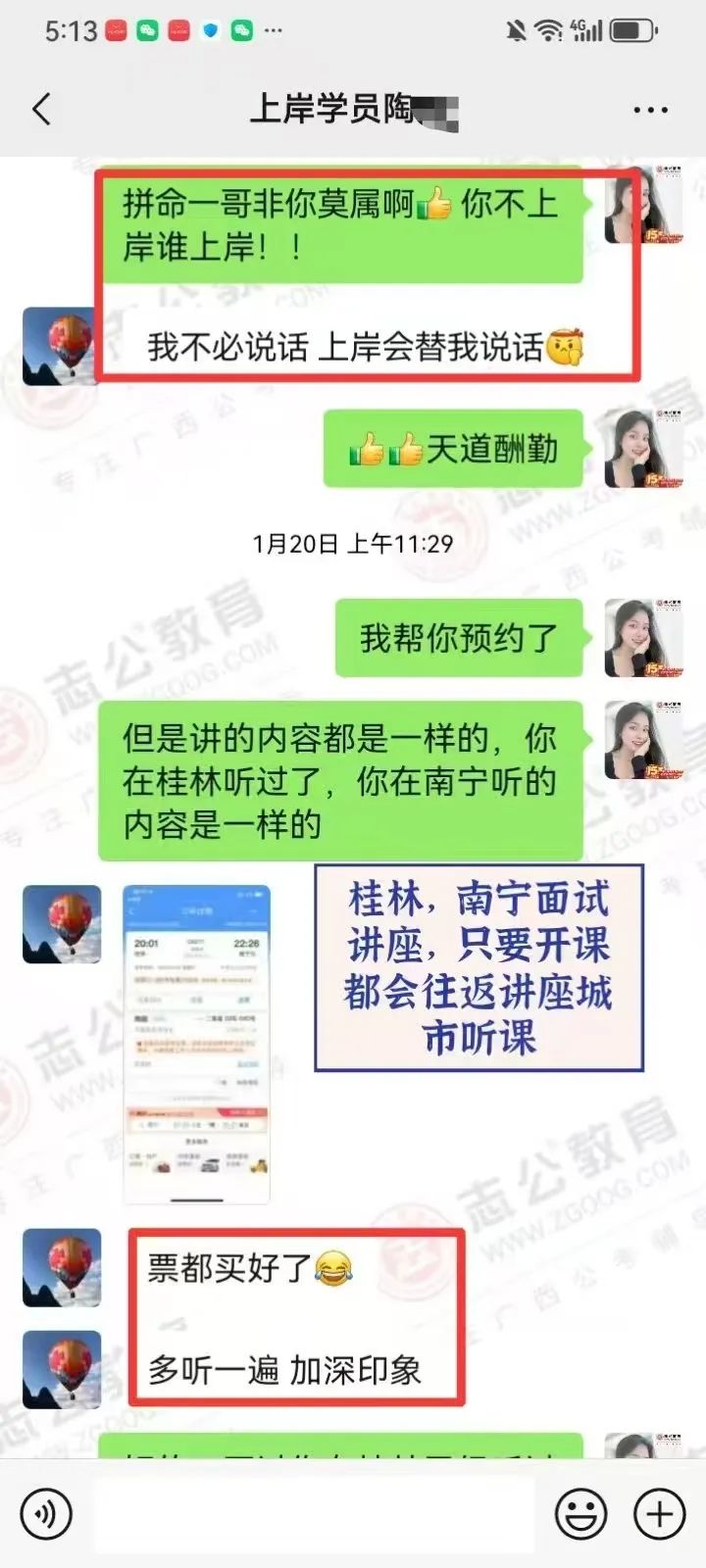2023年,臨近研究生畢業(yè)時(shí),一次偶然的機(jī)會(huì),他得知同學(xué)的愛人也就是我,在我們志公教育任教。加我微信后跟我了解到我們志公有一個(gè)非常適合他的畢業(yè)成公課程,也了解到我們是一家優(yōu)秀的公考培訓(xùn)機(jī)構(gòu)后,8月他毫不猶豫地報(bào)了我們的畢業(yè)成功班。從那以后,他一邊上學(xué)一邊培訓(xùn),常常學(xué)習(xí)到深夜。2024年國考,他進(jìn)面了,聯(lián)系了我升級(jí)面試班,但未能成功上岸。不過他沒有絲毫氣餒,迅速調(diào)整心態(tài),繼續(xù)征戰(zhàn)農(nóng)信社和選調(diào)生。