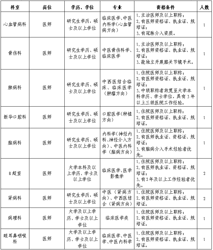 根據(jù)醫(yī)院高質(zhì)量發(fā)展需要,我院誠(chéng)聘衛(wèi)生醫(yī)療相關(guān)專(zhuān)業(yè)領(lǐng)域的人才,歡迎投簡(jiǎn)歷應(yīng)聘。