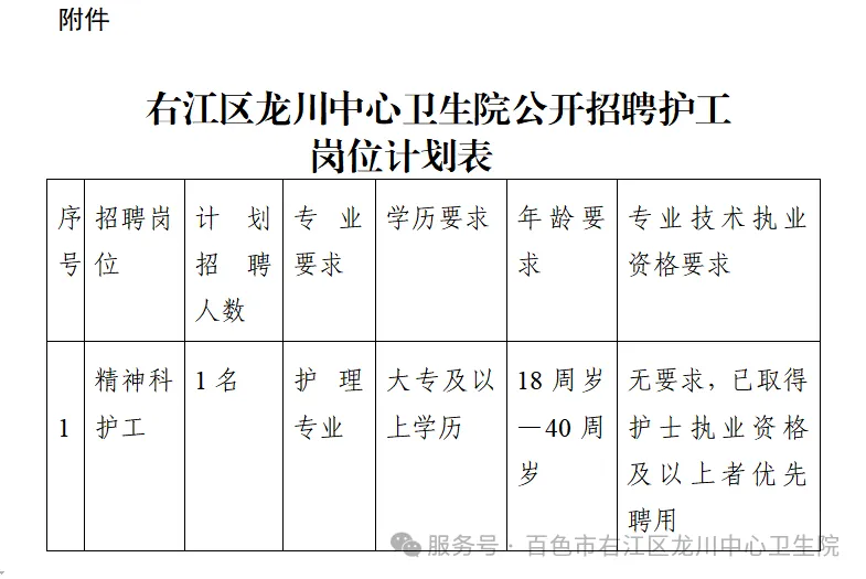 附件:右江區(qū)龍川中心衛(wèi)生院公開招聘護工崗位計劃表