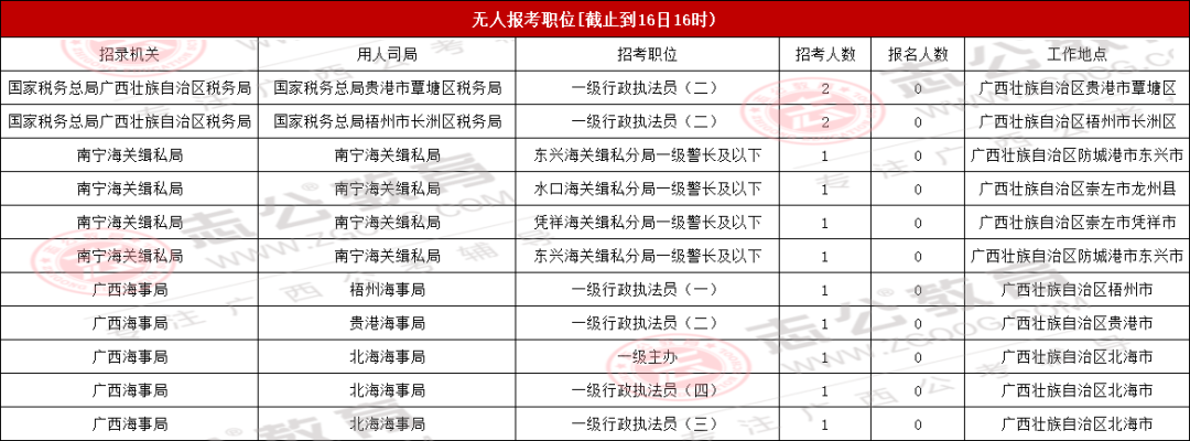 今天是報名第二天,小伙伴可要抓住此次上/岸機會啦!來看看廣西今天的報名數(shù)據(jù)吧。截止10月16日下午16:00,已經有13116名考生報名,最熱崗220人報名!從各項數(shù)據(jù)來看,部分考生可能還持觀望態(tài)度。在接下來的報名時間里,可能會迎來報名人數(shù)大幅增長的情況,大家可以密切關注。
