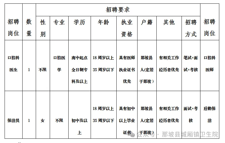 原文標(biāo)題:【招聘信息】那坡縣城廂鎮(zhèn)衛(wèi)生院公開招聘編外工作人員公告