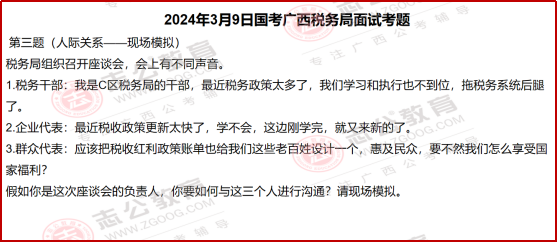 國考面試里,稅務系統(tǒng)的題目一直有個很明顯的特點,就是緊跟國家政策、貼近實際工作。尤其是2024年廣西稅務局的面試題,把這個特點體現(xiàn)得特別透徹??催@些題目,既能知道稅務工作實際需要什么樣的人、做什么樣的事,也能清楚面試到底要考察我們哪些核心能力。今天小志就帶大家了解一下,國考中稅務系統(tǒng)面試一些相關信息解讀:
