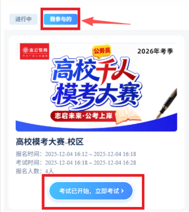 1??掃描下方 “公考天眼” 小程序,首頁(yè)直接點(diǎn)擊「模考大賽」;