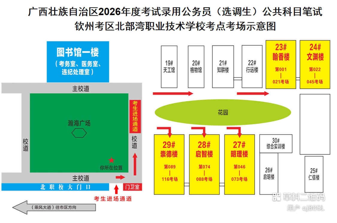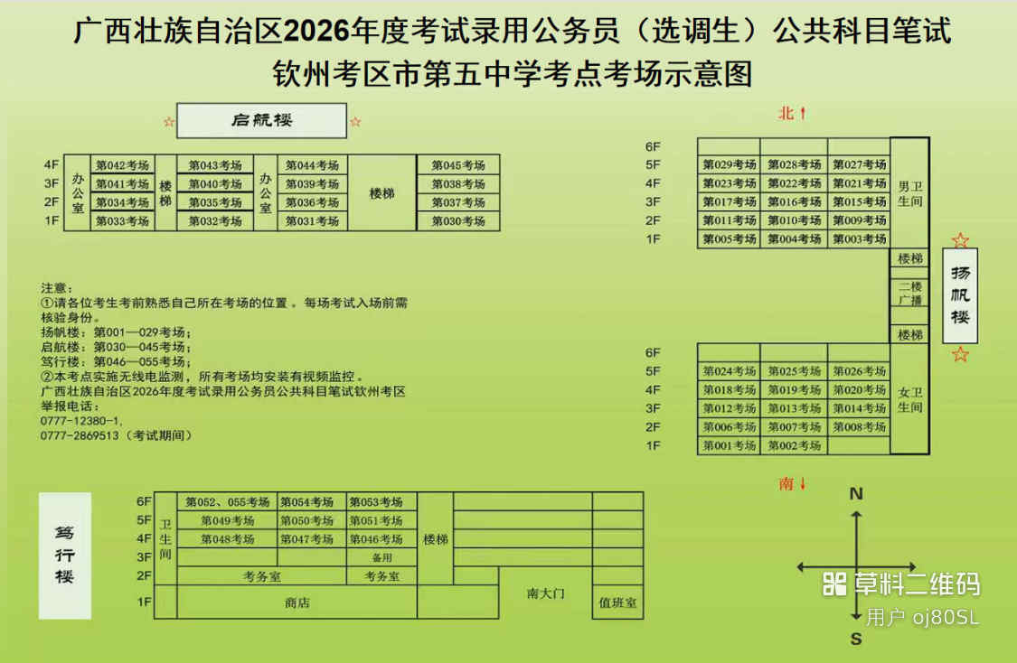 欽州考區(qū)共設(shè)三個考點(diǎn),分別為北部灣大學(xué)考點(diǎn)、北部灣職業(yè)技術(shù)學(xué)??键c(diǎn)、欽州市第五中學(xué)考點(diǎn)。(考點(diǎn)地址和具體考場安排請掃附后的二維碼查看)