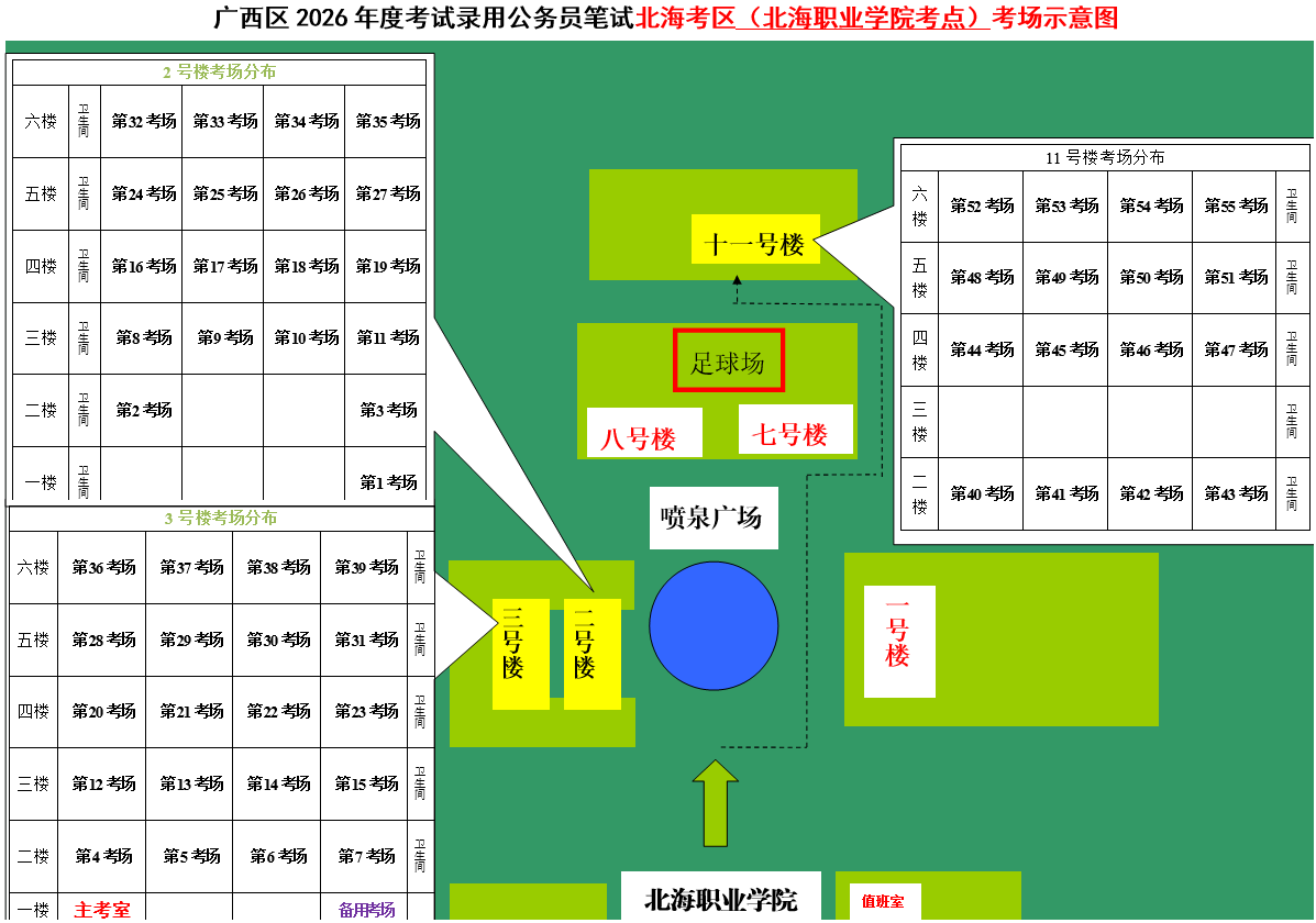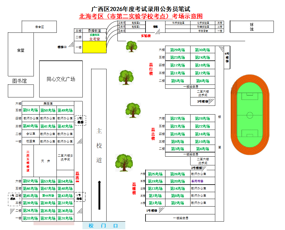 北??紖^(qū)共設(shè)置6個(gè)考點(diǎn),具體考點(diǎn)考場布置分別如下:
