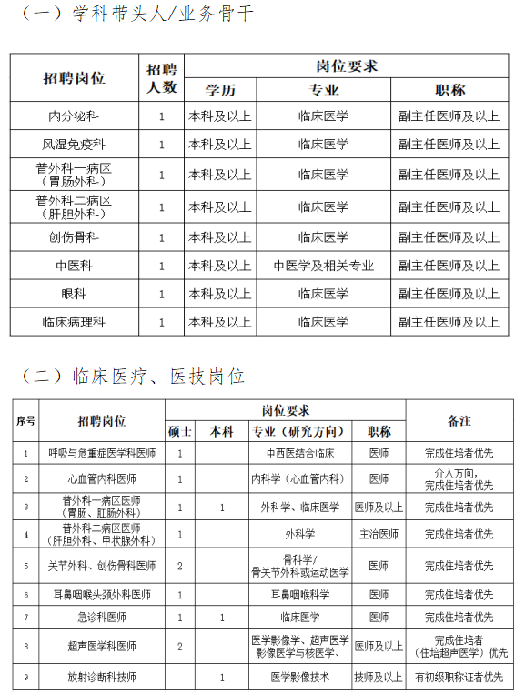 根據(jù)醫(yī)院發(fā)展需要,現(xiàn)面向社會(huì)招聘臨床崗位各層次人才,有關(guān)招聘事項(xiàng)公告如下: